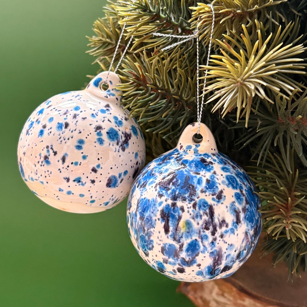 I love making these glaze combo ceramic baubles! Each one using a reactive glaze means they’re all different even when in the same style with natural patterns made by the glaze.