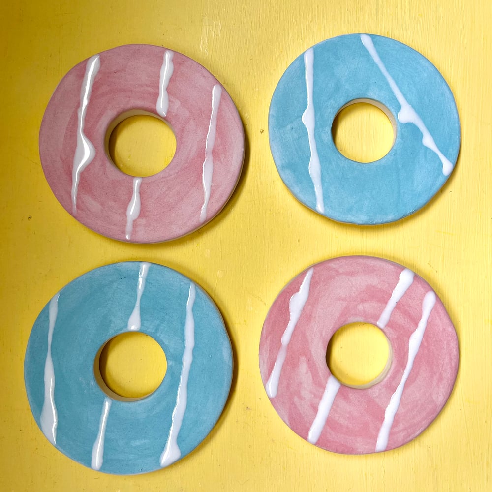 We’re bringing the party with giant ceramic party ring biscuit coasters!